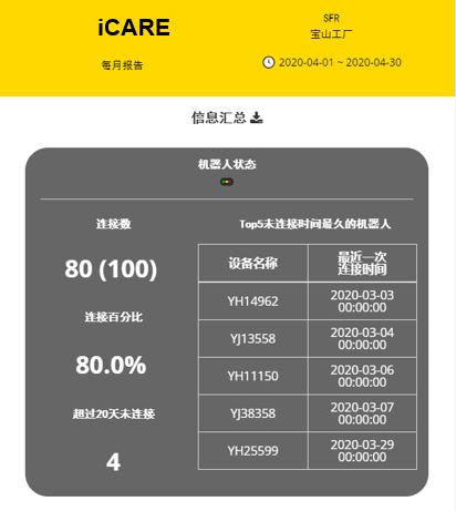 提供對所有機器人的每日、每月數據報告。
