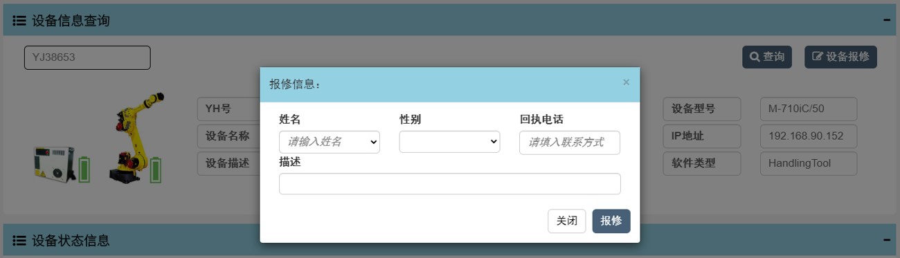 用戶可對有問題的機器人在頁面一鍵報修;上海發那科的服務團隊在后臺收到報修后,將確認問題并聯系客戶解決。